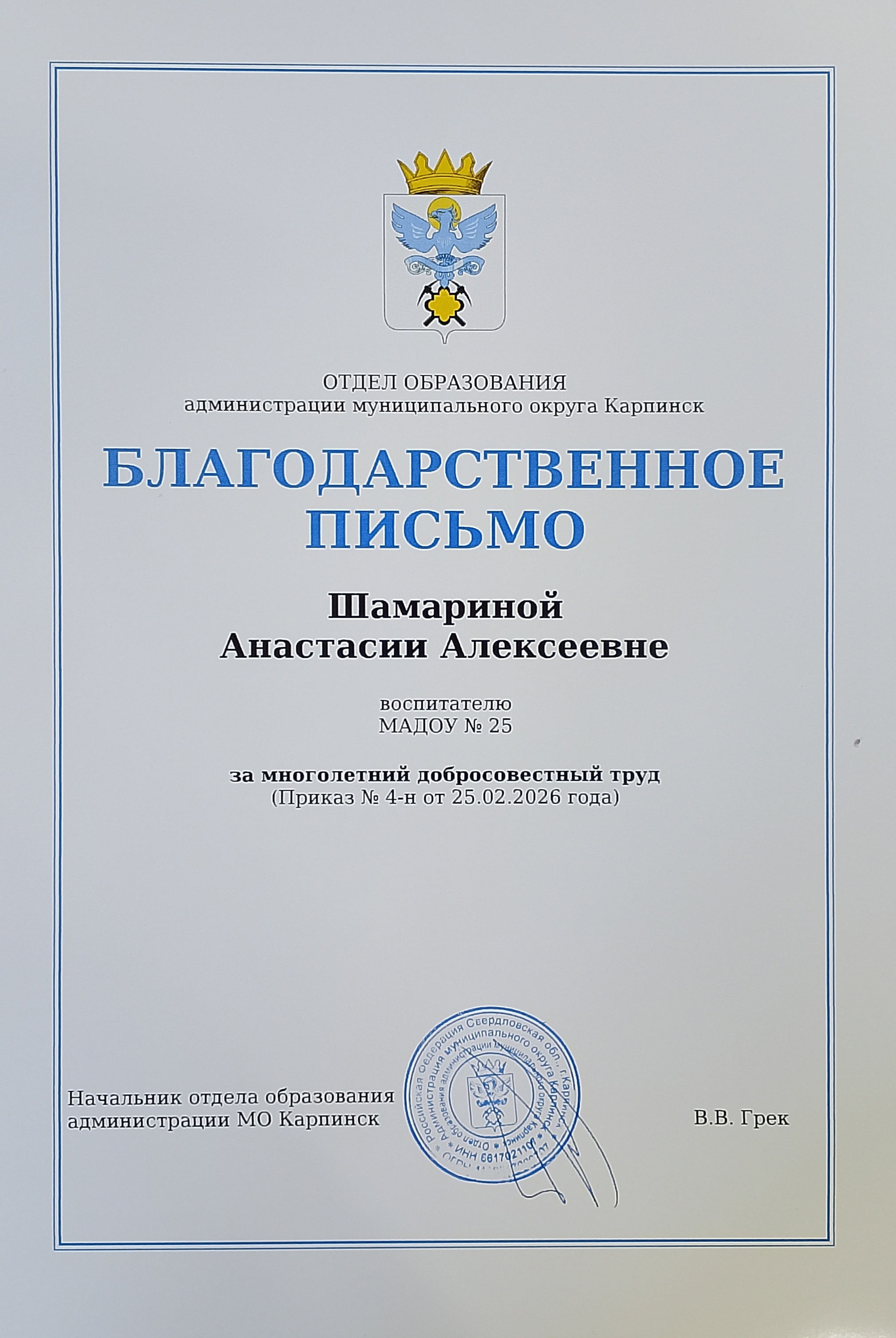 Благодарственная грамота за подготовку победителя Всероссийского творческого конкурса "Моя Москава, моя столица."